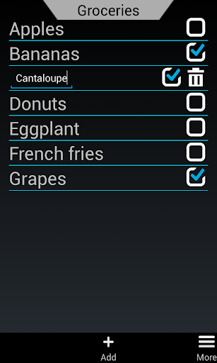 Touch and hold existing items in order to edit or delete them. Swipe down from the top in order to switch lists or add new ones.