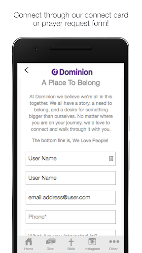 Get connected today through the Dominion App! Gain access to our media content, powerful messages, uplifting worship and convenient giving. We are committed to Loving God and Loving People.