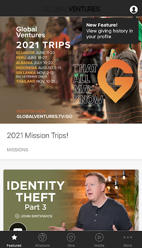 Fulfill the Great Commission with us! With our app you can stay up to date with trips and projects, The Reach Podcast, and more. You'll also be able to see your trip progress through our team portal and give with ease. Plus, see full-length episodes of the Global Ventures TV show!