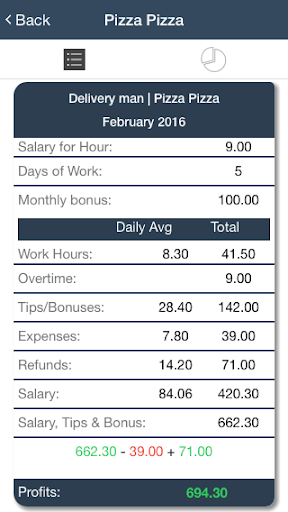 By enter this information you are getting statistics about your salaries, tips, expenses & refunds, days/hours of work and much more.
