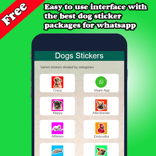 In this App you can download for free the best stickers of dogs and puppies of all very original breeds; We have segmented the sticker packs into different categories to make it easier for you to use, Crazy, Happy, Affectionate, Athletes, Disguised, Sleepy, Distrustful, Funny, Surprised, Jealous