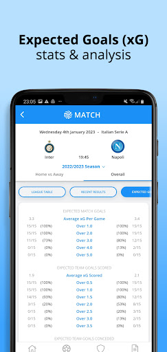 Expected goals figures are available for each game covered by the app. This allows a view in the flow of the game, and analysis of which teams are performing well without getting the results their play deserves.