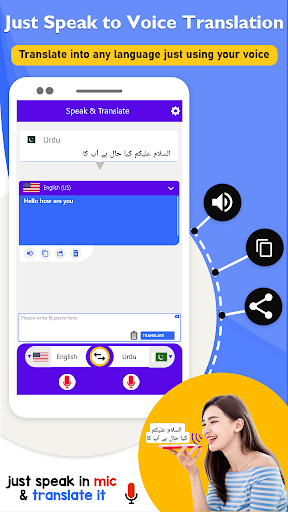 Speak and translate app: speak to speak translation is the one of the best and unique voice translator app with low installing size and free of cost translate all languages with single tap. This free language translator and interpreter is an innovative communication android application that provides a unique and easy way to translate and interpret all languages of the world. Speak and Translate is a free voice to voice translator and All Language Voice Translator for users who frequently need to translate one language into another.