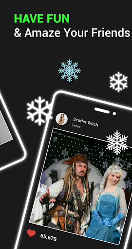 The application will automatically swap your face with famous characters in the clips. All you need to do is take a selfie or choose a photo with your face. Deepfake AI technology will be applied to bring the face transplant effect with high realism.