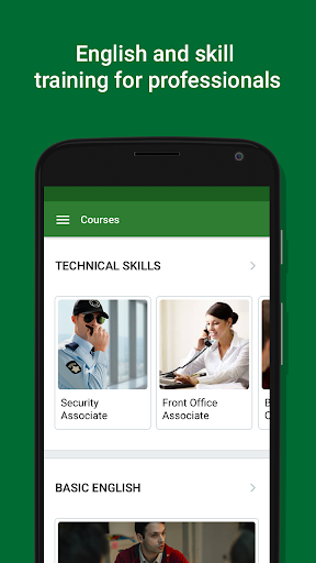 Learn English and Skills for various professionals such as driving, private security guards, facility management etc. by practicing with our chatbots for just 10 minutes every day! Translate words and sentences into your native language and make learning super fast. Learn meanings of words and hear full sentences in English to quickly sharpen your speaking and on job skills.