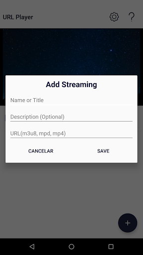 Simply add a new item of streaming through urls .m3u8, .mpd, .mp4, among others. Select the item you want to see from your list and that's it, to enjoy your channels, videos or online streaming.