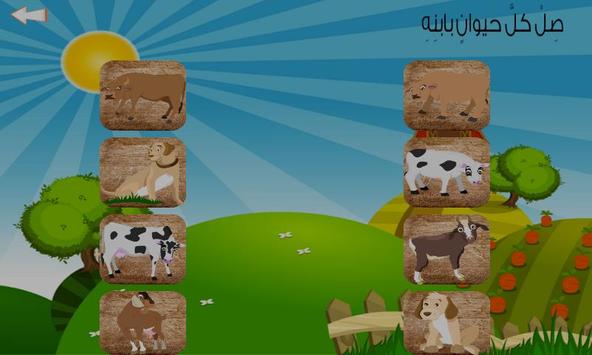 لعبة توصيل كل حيوان بصغيره مع مؤثرات صوتية محفزة.