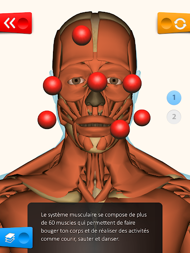 1- Mode Exploration avec possibilité d'activer différentes couches : LES SENS, LE SYSTÈME RESPIRATOIRE, LE SYSTÈME REPRODUCTEUR, LE SQUELETTE, LE SYSTÈME MUSCULAIRE, LE SYSTÈME CIRCULATOIRE, LE SYSTÈME NERVEUX, LE SYSTÈME DIGESTIF