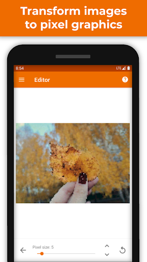 PhotoToPixels is a handy tool to transform your images to pixel pictures. Choose an image from your device, customize block size and color palette and press the "Save" or "Share" button.