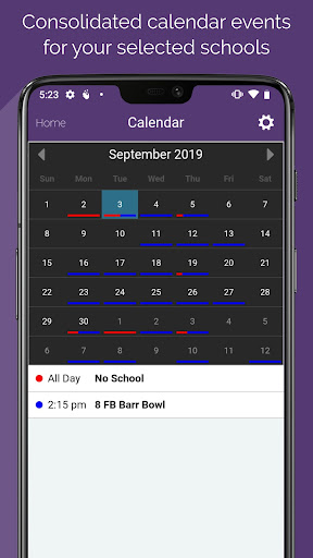 Stay informed of school and district announcements, activities and events from Grand Island Public Schools. Select a preferred list of schools and monitor activity from several social networks, including Facebook, Twitter and YouTube. Transfer any activity or event directly to your Android calendar with a single tap.