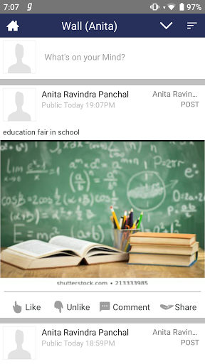 • Student can update status with course work, and other things on personal wall and share within his group, friends or publically