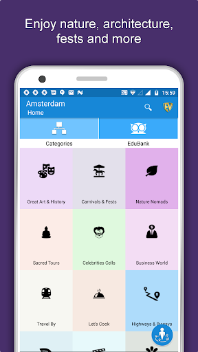 Apart from this, Amsterdam Travel & Explore guides you Why, When and How to visit various places in Amsterdam with precise location on the detailed Map. There are two ways to explore this app - Category view and EduBank favorite places view. Pin your destinations and get the routes on the Map. Not only this, you can see exactly how the places look like with Street View integrated in this app. The app also has a feature to Rate and write Review/Experience regarding entity(s) through Login. Your Travel experience and rating will help the user community.