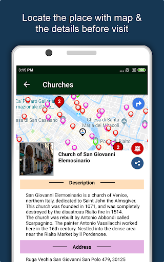 All features and images in Venice City Guide are available offline. This Venice Travel App is for the globetrotters who go by the quote, “All journeys have secret destinations of which the traveler is unaware”. With Venice Tourist Guide, Unveil the Veiled places, Connect with plethora of people, understand culture, art and history, Speak with natives in their language, relish the authentic food and take delight in the festivities.