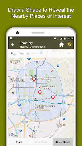 * Nearby or Map feature - It has 3 options- Draw Shape, Select Marker and Reset. You can choose accordingly.