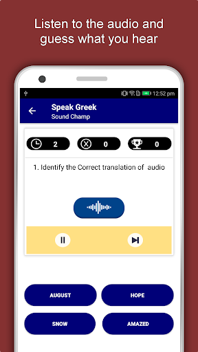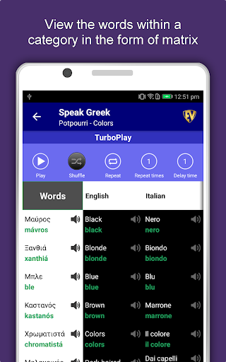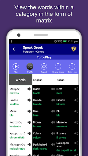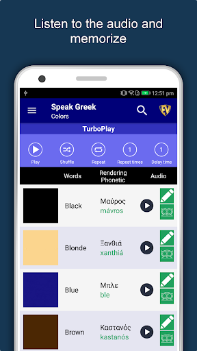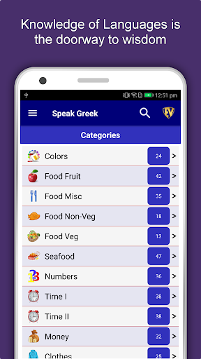 The offline Greek learning app has 2,135 words with 55 categories. It contains pronunciation, images and phonetics of words for easy learning. Switch base language, Save learnings in EduBank℠, audio play, Potpourri and retention games are the main features of Speak Greek app.