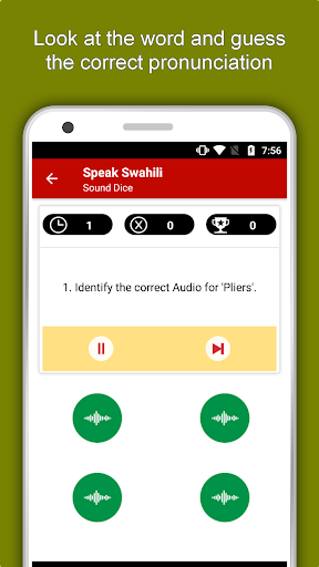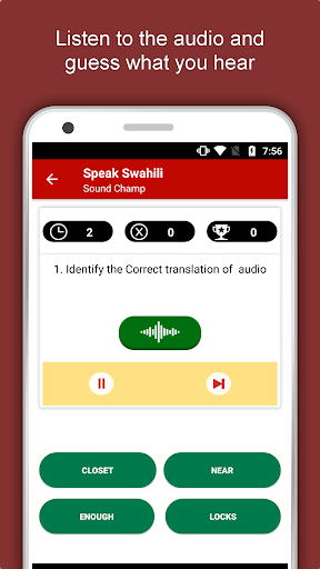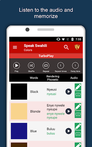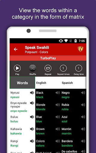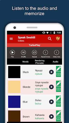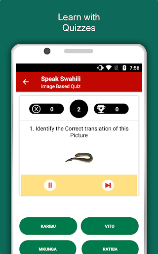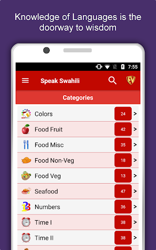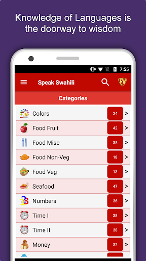 The offline Swahili learning app has 2,135 words with 55 categories. It contains pronunciation, images and phonetics of words for easy learning. Switch base language, Save learnings in EduBank℠, audio play, Potpourri and retention games are the main features of Speak Swahili app.