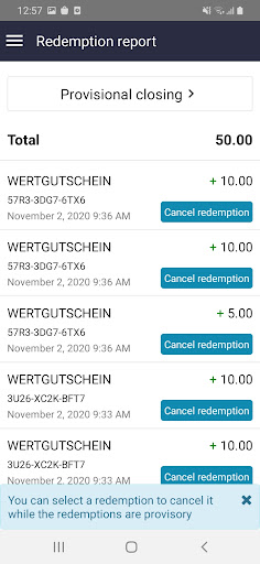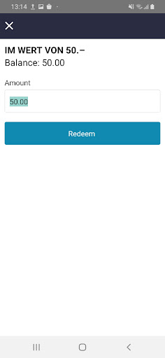 scan vouchers with the integrated barcode scanner. The voucher code will be checked and depending on the voucher you can then either activate or redeem the voucher.