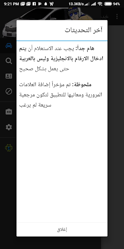 Important note: When trying to know about your car tickets please type the characters part in Arabic letters then switch to English and type the numbers part in English numbers to avoid errors and works perfectly.