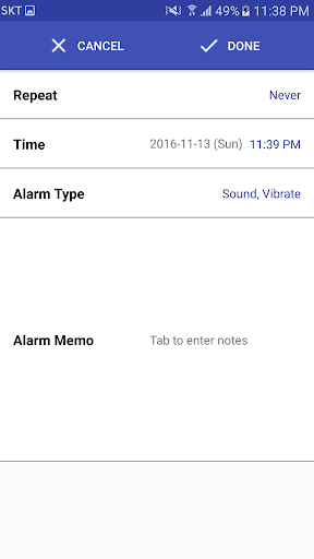 Notepad, note alarm in exact cycle and form, using minimal resources