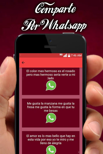 Also in our application compliments to conquer you can find Phrases to say I miss you or I love you Poems of love Phrases and poems of loveless Cute phrases of love Short poems of love Tender phrases Phrases to make and dedicate poems Verses of love to share or send it through of different social networks like whastapp, twitter, facebook, or by email, etc .: