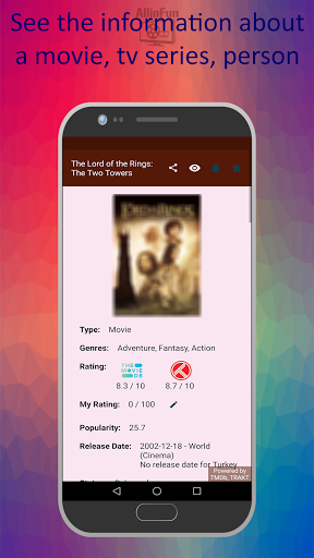 - You can share a movie, tv series, person you like or your statistics with your friends via social media platforms.
