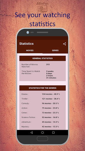 - You can rate the movies/tv series and use these ratings to order the items in your favourite lists. You may want to use these ratings, for example, to remember the best movies/tv series you have watched or recommend a movie/tv series to your friend later. Also, you can see the statistics according to these ratings on the statistics screen.