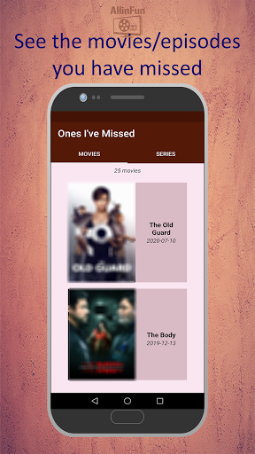 - You can check the movies and tv series episodes that were released and you have missed on the "Ones I've Missed" screen. You may want to use this screen when you are not sure what to watch next.