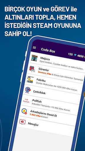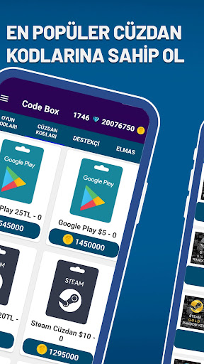 By starting to use the Code Box app you will get free game codes and wallet codes. Get lots of e-pins and game codes by completing various fun tasks in the app.