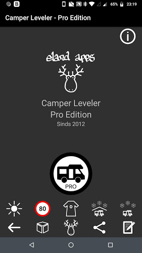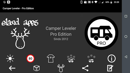 Camper Leveler - Pro Edition is the app that helps leveling your motorhome or any other 4-wheel vehicle. The first version was created back in 2012 by eland apps and is being used by thousands of camper enthousiasts all over the world!