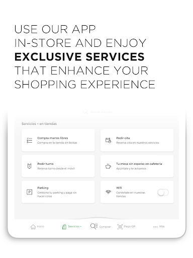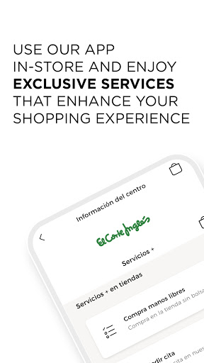 You can manage all of your purchases and services at El Corte Inglés, book a slot or pay directly via the app with the El Corte Inglés store card.