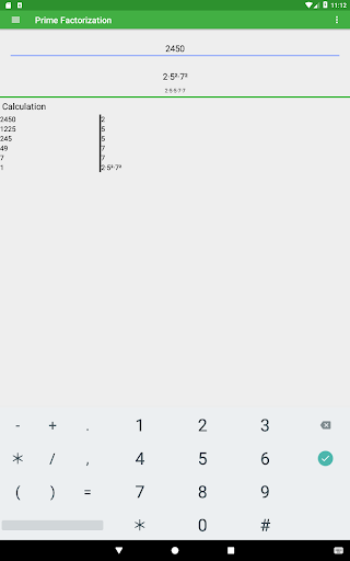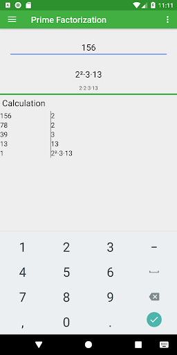 A prime number is a number that is only divisible by one and itself. This app calculates all prime numbers that fit in the entered integer. e.g. 56 gives 2·2·2·7.