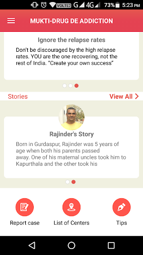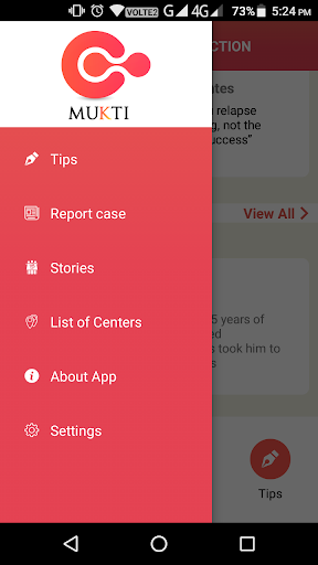 Mukti: Drug De-Addiction is an app is an initiative to create awareness against drugs addiction. The app provides tips to encourage de-addiction and help users to report a drug addict to a de-addiction centre.
