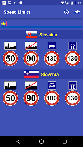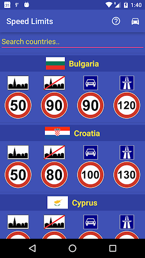 Just type the name of the country and see all the speed limits for cars or motorcycles.
