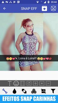 Efeitos Snap para colocar emoji sobre a foto com filtros e cores colocar aquelas carinhas tipo Emoji de todos os tipos e você expressar na foto com suas frases e textos sobre a foto.