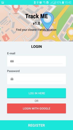 * You can log in to the Track Me app with an email address and a password, and you can also sign up and create a new account.
