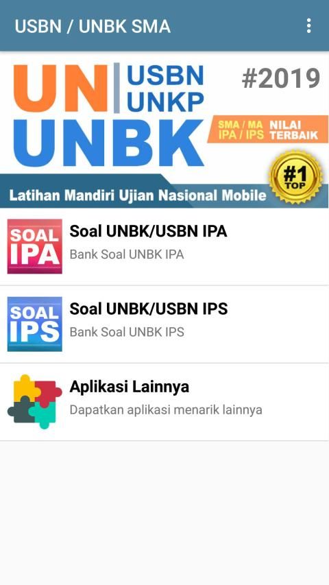 Dalam paket aplikasi UN SMA 2019 terdapat banyak materi latihan yang disertai dengan jawaban benar (kunci jawaban). Soal-soal Ujian Nasional yang disajikan merupakan kisi-kisi yang sangat berpeluang besar untuk muncul dalam UN SMA 2019, karena Soal UNBK SMA 2019 ini merangkum soal UN dari tahun-tahun sebelumnya dan soal-soal baru yang sesuai dengan kurikulum terbaru. Aplikasi UNBK SMA Terbaru 2019 USBN, UNKP Mobile (Simulasi Mandiri).