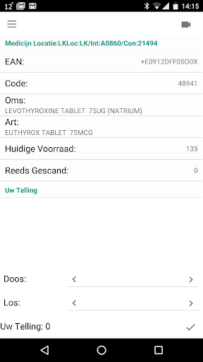 Deze applicatie werkt alleen in samenwerking met de Farmascan server. Gebruik deze applicatie om Uw actuele medicijnvoorraad te tellen.