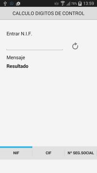 Aplicación para calcular y comprobar los dítigos de control de Número de Identificacion Fiscal (NIF), Codigo de Identificación Fiscal (CIF), Numero de Afiliación de trabajador a la Seguridad Social y Número de Cuenta de Cotización de empresa a la Seguridad Social. Proximamente iremos añadiendo más controles y utilidades de oficina, como el cálculo de los digitos de control de cuentas bancarias, plan general de contabilidad, etc. Además aceptamos sugerencias de los usuarios para añadirlas a la aplicación, siempre que sea posible.
