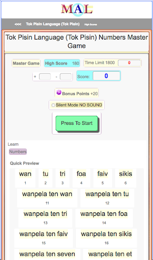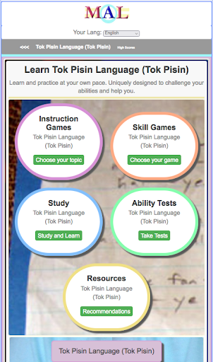 Play Tok Pisin Learning Games, Study and Learn with online Flash cards, Take Tok Pisin Tests