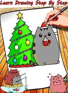 • How to Draw Christmas Holiday Pusheen cat Cute step by step easy a for Beginners .
