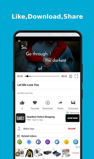User Can upload their short videos and status for Whats App face book and isntagram status.