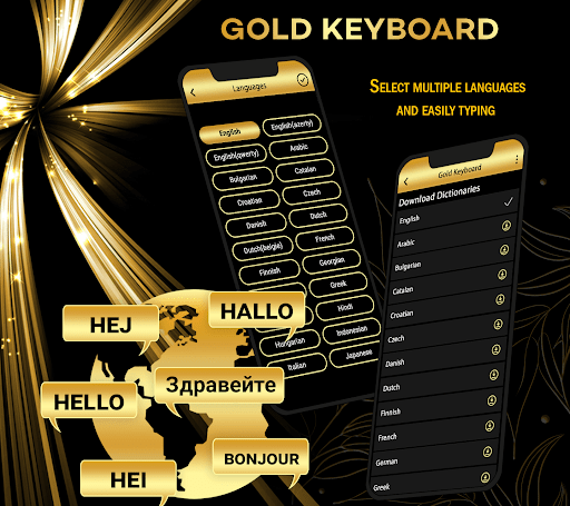 Gold Keyboard is a unique, smart & customized keyboard for android. It comes with the stylish keyboard background, fonts,emojis and stickers!