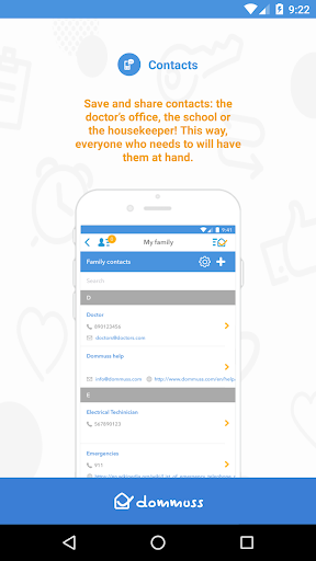 * Contacts: Save and share contacts: the doctor’s office, the school or the housekeeper! This way, everyone who needs to will have them at hand.