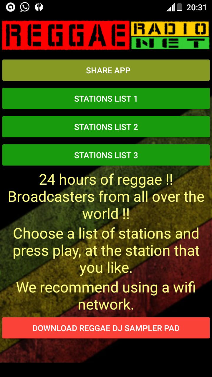 24 hours of Reggae stations from around the world ready to be heard, with a single click, at the moment you can enjoy 39 stations that broadcast over the internet, we will be adding more in new updates. We hope you enjoy it !!