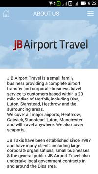 JB Airport Travel have created a mobile app to increase customer interaction in a user friendly, portable manner and to ensure their presence within current mobile technology. The app includes useful features such as: -