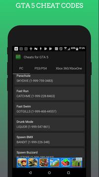 Grand Theft Auto 5 (GTA V) cheats for PS4, Xbox One, PS3, Xbox 360 and PC cheat codes, hints, unlockables, instructions and more. Obtain vehicles including helicopter, cars, bikes, motorcycles, etc at will!. Enhance your player's abilities,gain better weapons, lower your wanted level, become invincible!