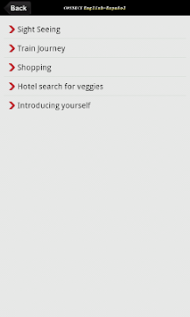 For the user’s benefit, there are carefully thought out categories like Expressions, Questions, Help for asking address and transport details, Situational categories like Train Journey, Sight Seeing, etc. which include likely conversational phrases one encounters in such situations.