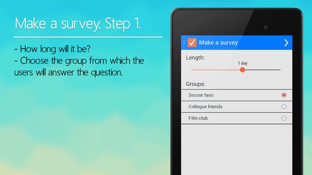 - Publics: any app user can search and answer this kind of surveys.