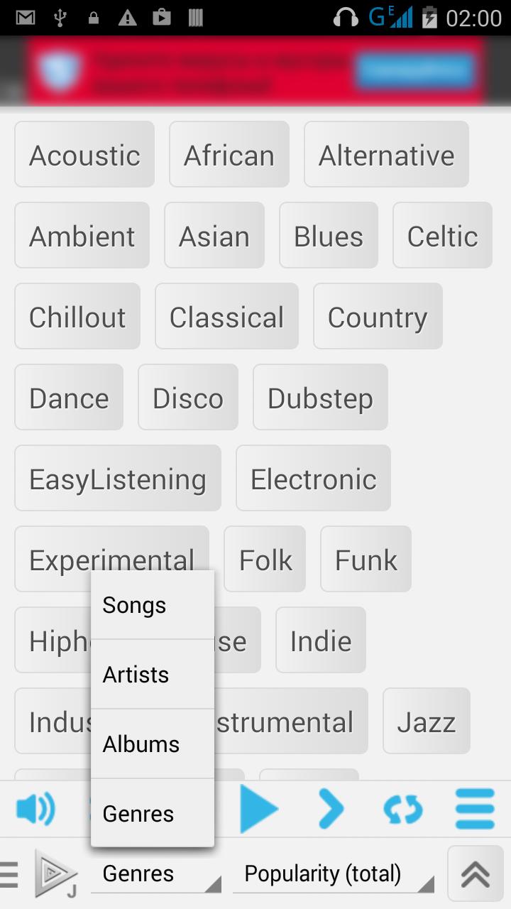 - For Jamendo : songs, artists, albums, genres.