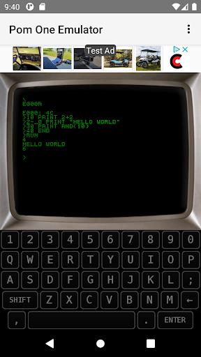 The Apple 1 Computer uses a MOS 6502 processor with a scrolling text display at 40x24.